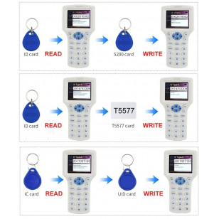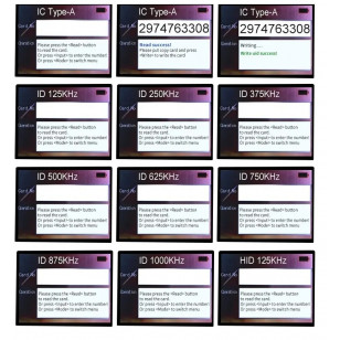 3. Toto zariadenie podporuje čítanie a kopírovanie 125 kHz, 250 kHz, 375 kHz, 500 kHz, 625 kHz, 750 kHz, 875 kHz, 1M, HID-125 kHz, 13,56 MHz (režim ic), podporuje väčšinu dešifrovacích kariet s šifrovaním IC (ale nie všetky), nepodporuje kopírovanie čipových kariet CUID a FUID, nepodporuje karty s napájaním.